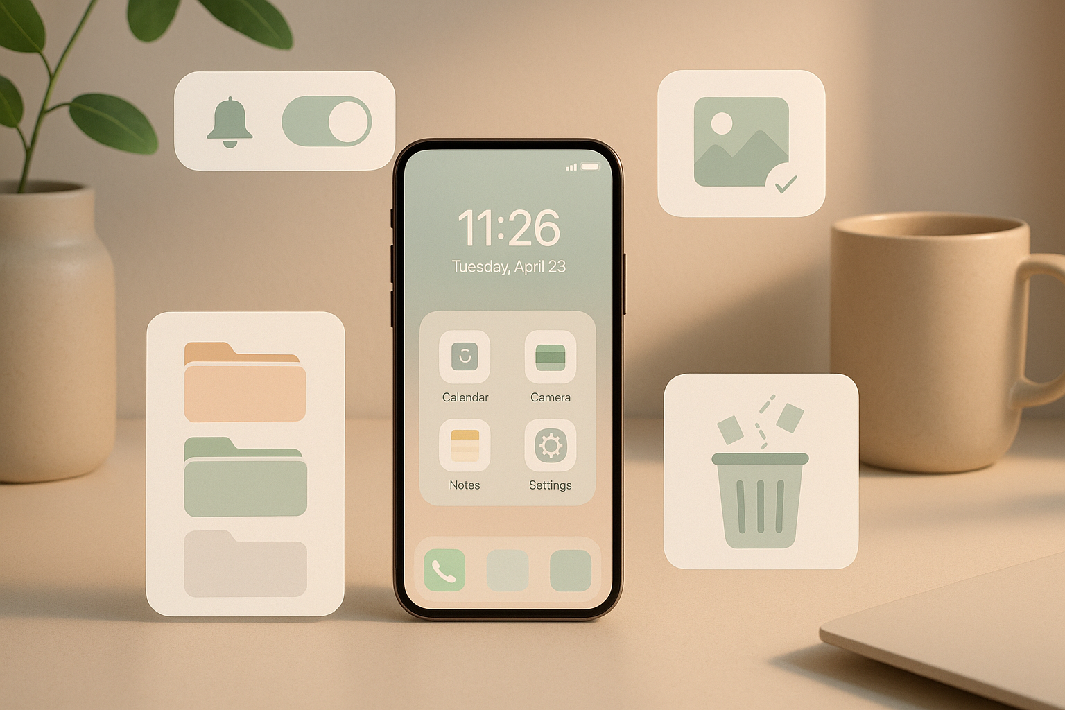 Start with the place you see the most — your home screen. Many apps we install “for later” never get used again. Remove apps you haven’t opened in months. Group essential apps into folders like Productivity, Social, Finance, and Health. A clean home screen helps your brain relax every time you unlock your phone.