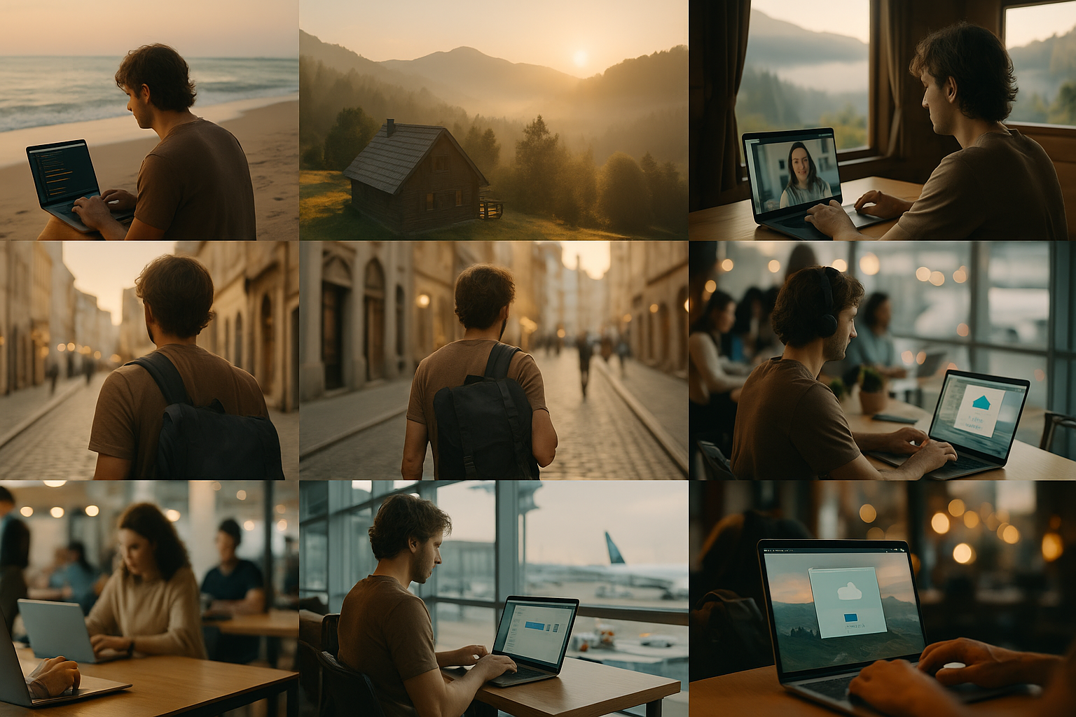 A digital nomad is someone who works online while traveling, without being tied to a specific city or office. They use technology to stay connected, deliver projects, join virtual meetings, and collaborate from anywhere — whether it’s Bali, Dubai, Bangkok, or their hometown café.