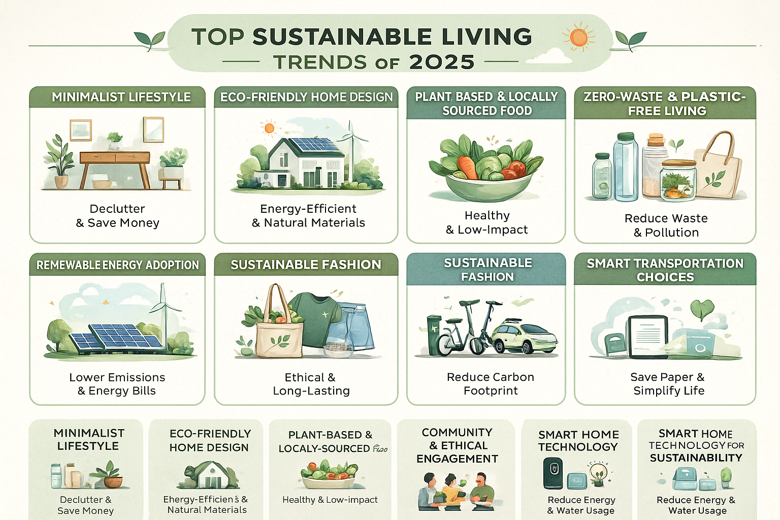 Sustainable living is not just a trend but a lifestyle choice that combines eco-conscious decisions, smart technology, and mindful consumption. From minimalist habits and zero-waste practices to renewable energy adoption and ethical fashion, these trends are shaping a greener, healthier, and more responsible way of living. By incorporating even a few of these practices, you can make a significant positive impact on the environment while improving your quality of life.